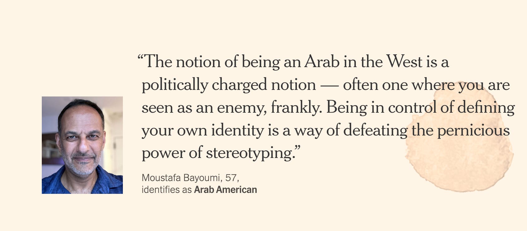 I recently “participated” (re: checked a few boxes, ironically) in a survey conducted by The New York Times about Arab and American identities. And what did we learn? “The answers were as diverse as the group of individuals behind them.”